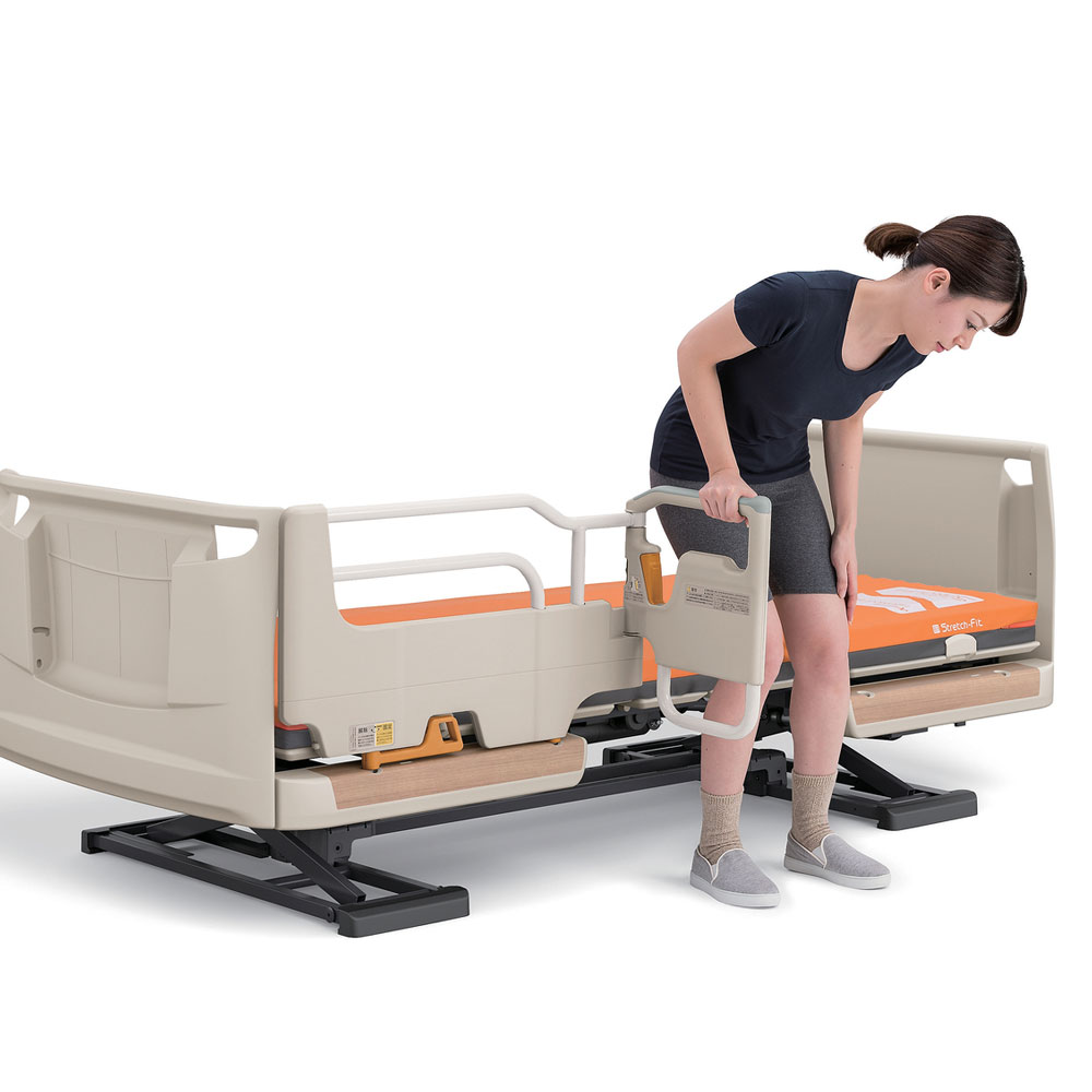 ベッドに手すりを固定し、寝返りや起き上がり及び立ち座りの際につかまることで、動作を負担なく安全に行うことができます。