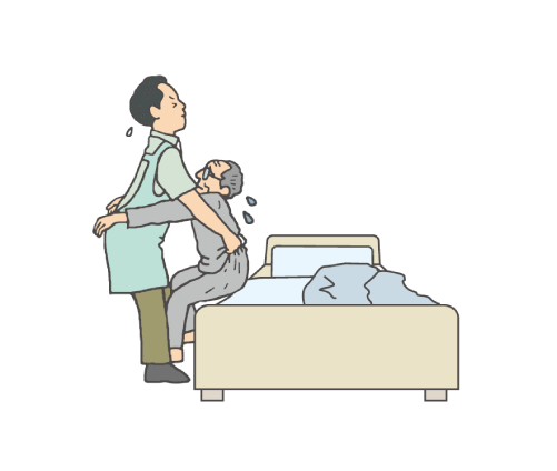 人の体は掴むところが無く、人の手で持ち上げるには物理的には向いていません。脇の下や腰に手をかけて立ち上がらせる介助になりますが、掴むところが無いため、手首などの関節に大きな負担を伴います。長く継続されると腱鞘炎などを引き起こしてしまいます。