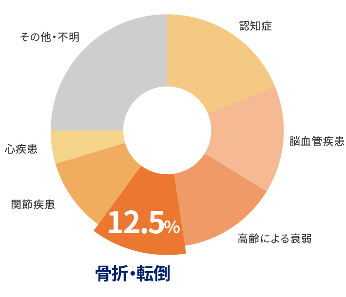 「転倒」は、高齢者の介護が必要となる原因の第4位。事故では第1位。