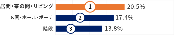 屋内での転倒場所は、「居間」が第1位。続いて「玄関」「階段」。
