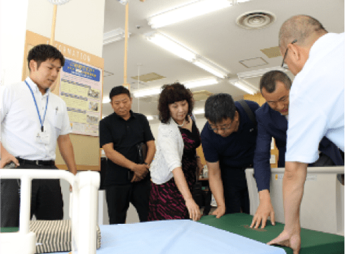 在中日本大使館、各日中友好団体、各商工会議所からの紹介で中国政府および各省養老企業の関係者の視察を受け入れ、海外においても福祉用具の促進に協力しています。