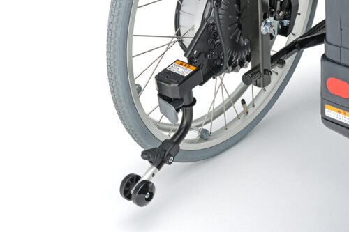 スタイリッシュなデザインと高いフレーム強度を持つ電動車いすです。介助者による電動操作が可能なタイプもあります。