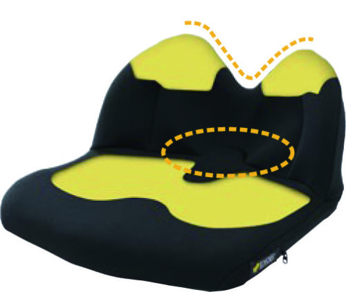円背で前ずれしやすい方のために設計された背座一体型クッションです。