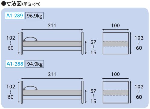 • 最低床時には床面高15cmになります。普段布団でお休みされていた方にも抵抗感の少ない床面高です。