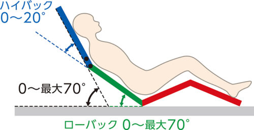 • 背圧や腹圧を軽減し横隔膜を広げ、呼吸がしやすい快適な姿勢をつくります。 また、体幹上部を屈曲することで、循環器への負荷を抑える効果が期待できます。