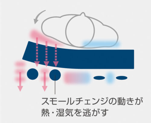 - スモールチェンジの動きにより、身体とマットレスの接触面やマットレス内部にこもった熱や湿気を逃がします。