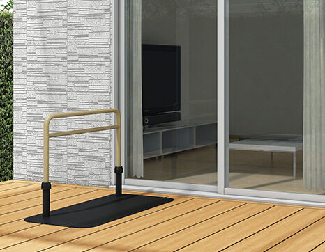 置くだけ簡単。屋内だけではなくベランダなどの屋外にも設置できる手すりです。