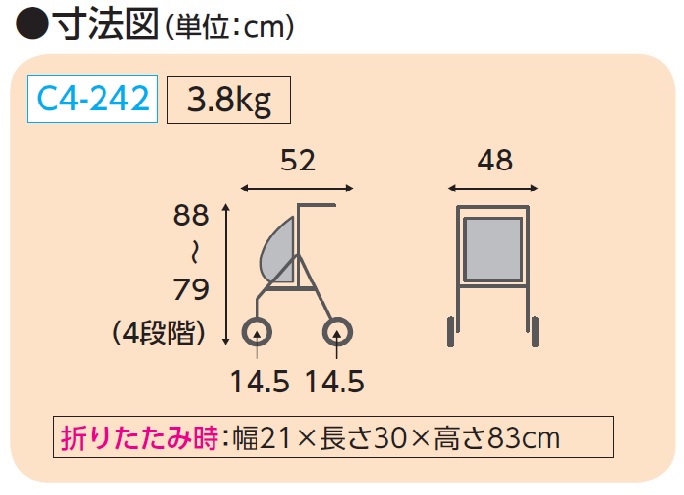 | 折りたたみ時 | 幅21×長さ30×高さ79~88cm(4段階) |