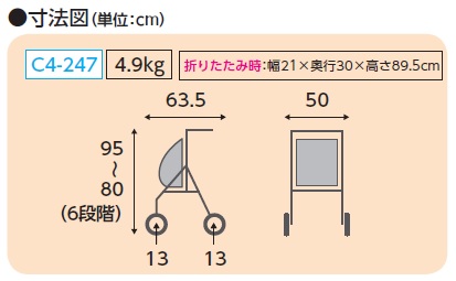 | 折りたたみ時 | 幅21×長さ30×高さ80~95cm(5段階) |