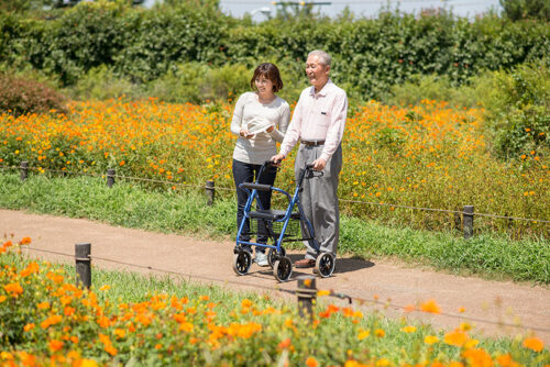 大きめのキャスターが装備されているので安定感があります。シンプルの中にも安全性と信頼性のある歩行器です。