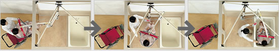 2関節タイプなので、脱衣所から洗い場、浴槽への移動ができるリフトです。