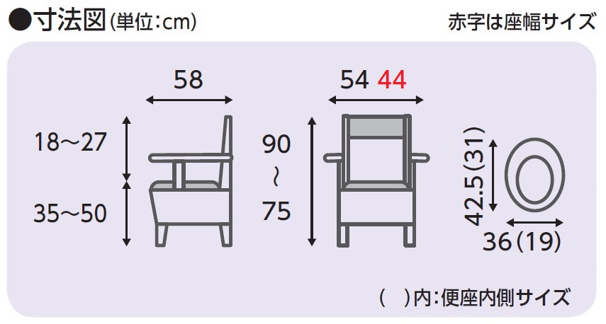 | サイズ | 幅54×長さ58×高さ75~90cm(便座内寸:19×31cm) |