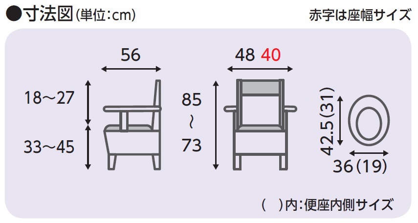 | サイズ | 幅48×長さ56×高さ73~85cm(便座内寸:19×42.5cm) |