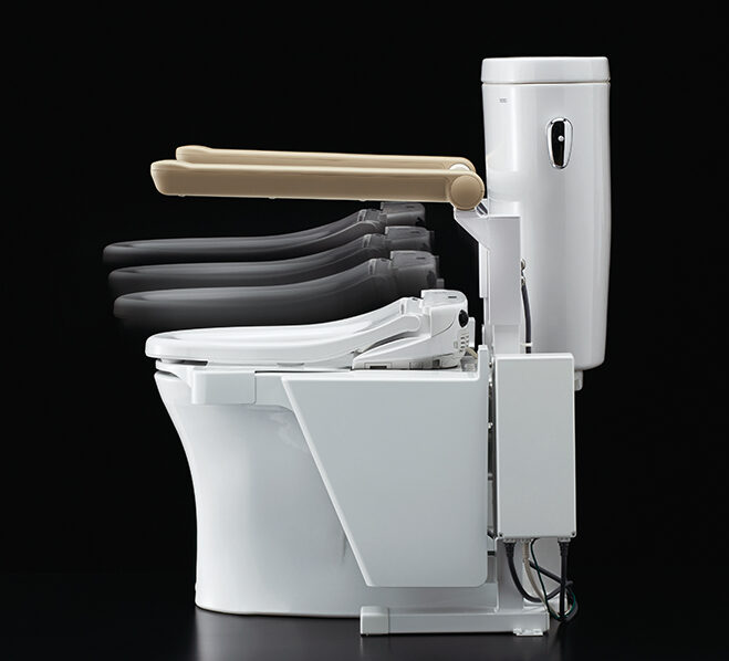 便座が昇降して、立ち座りを補助してくれます。