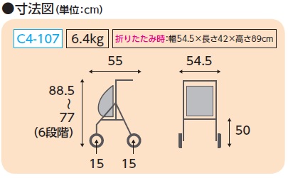 折りたたみ時 幅54.5×長さ42×高さ77~88.5cm(6段階)