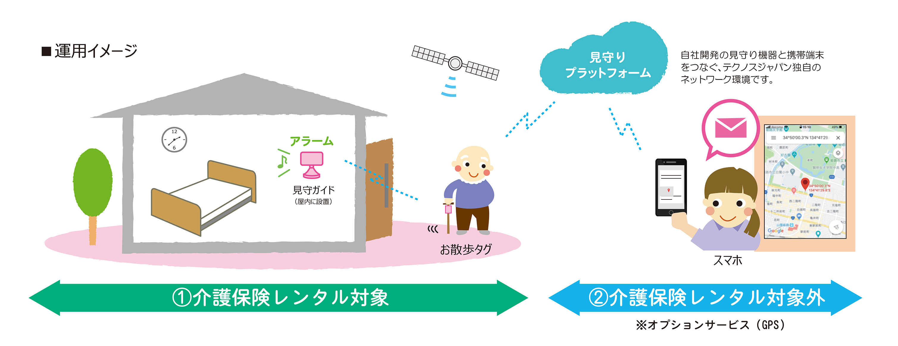 - GPSを利用したオプションサービスがあります(介護保険適用外で、月額利用料は税込330円です)。