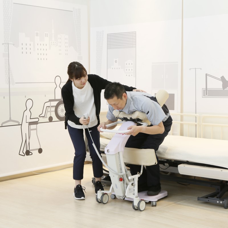 - ベッド⇔車椅子⇔お手洗いの移乗介助と立位保持を行なう事ができます。