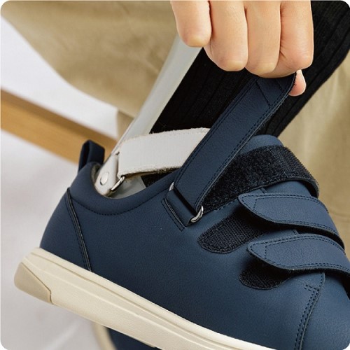 装具に対応したシューズです。大きく開いて脱ぎ履きがしやすいです。
