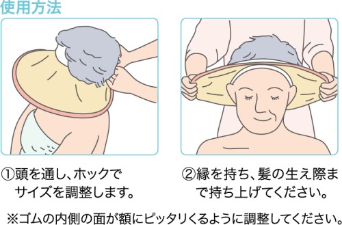 サイズ調整ができるシャンプーハットです。前かがみの姿勢が困難な方に。