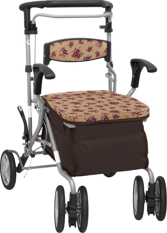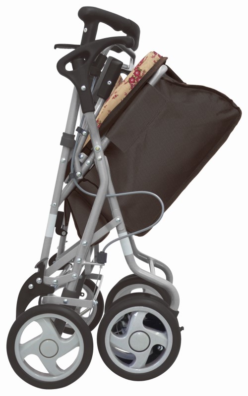 大きさを感じさせないスタンダードなシルバーカーです。買い物かごも載せられます。