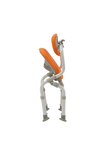 片手で簡単に折りたたむことができるシャワーベンチです。もちろん開くときもワンタッチでラクラクです。