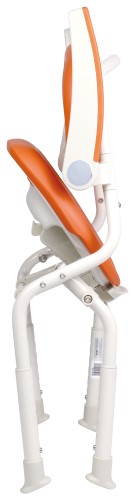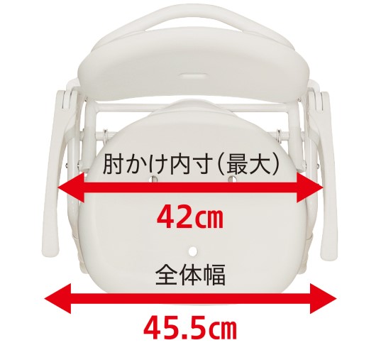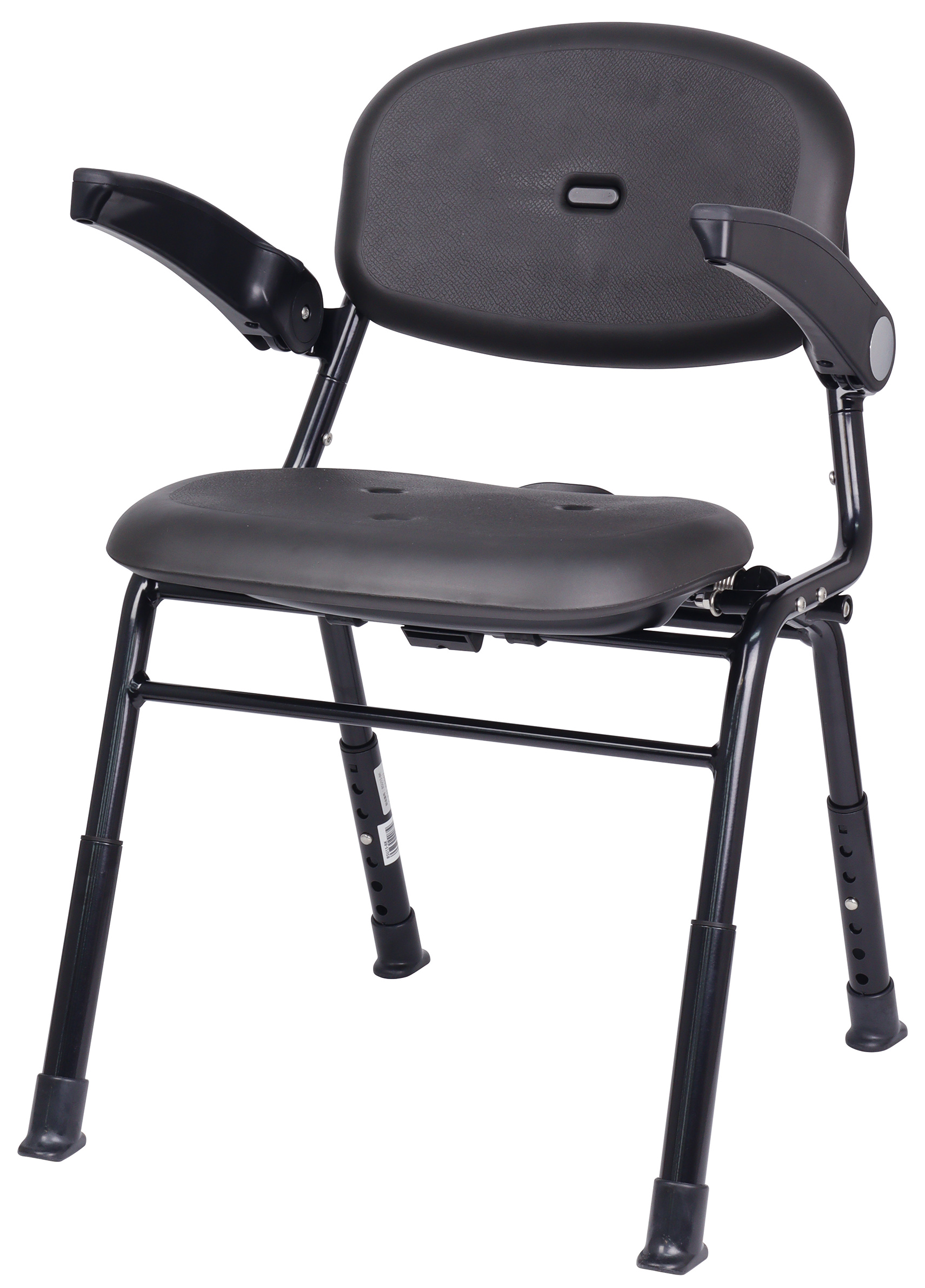 広く座れる新しいひじ掛けデザインのシャワーチェアです。