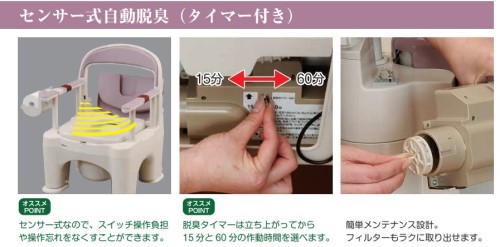 ポータブルトイレ<座楽>ラフィーネ 脱臭・プラスチック便座(前後傾斜脚付き)