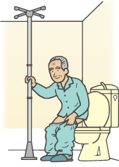 可能な限りご自宅のトイレを利用することが、自立支援につながります。 便器からの立ち座りやズボンの上げ下ろしなどが困難でも、手すりを設置してつかまることで姿勢が安定し、動作が楽になります。 工事不要な介護用品・福祉用具の手すりを活用しましょう。|
