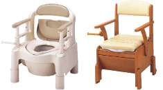ご自宅のトイレまで移動が困難な場合、居室で使用できるポータブルトイレという介護用品・福祉用具があります。 例えば、日中はご自宅のトイレを使用していても、夜間だけはポータブルトイレを使用することで、暗い中での転倒や、何度も起きて移動する負担を軽減する、ということもできます。 見た目にはトイレとわからないタイプのものもありますので、体の状態に応じて必要な機能を備えたタイプを選びましょう。素材