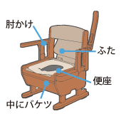 3.ポータブルトイレで排泄を行います。(使わないときはふたをしめておきます)