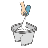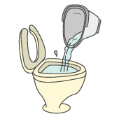 4.排泄後、バケツの中身は一定の頻度でトイレに流し、 バケツを洗浄します。