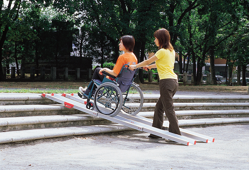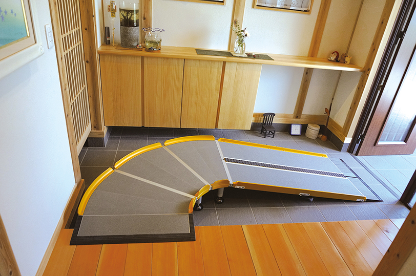 限られた場所にも設置でき、設置角度を選べ、坂道にも安定して設定できるスロープです。