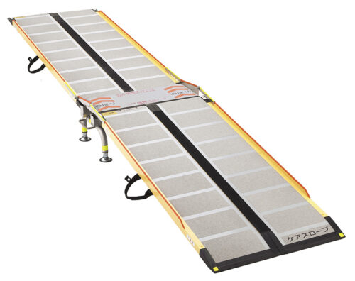 ケアスロープ2台、ジョイント台1台を組み合わせた車いす用の長尺スロープです。