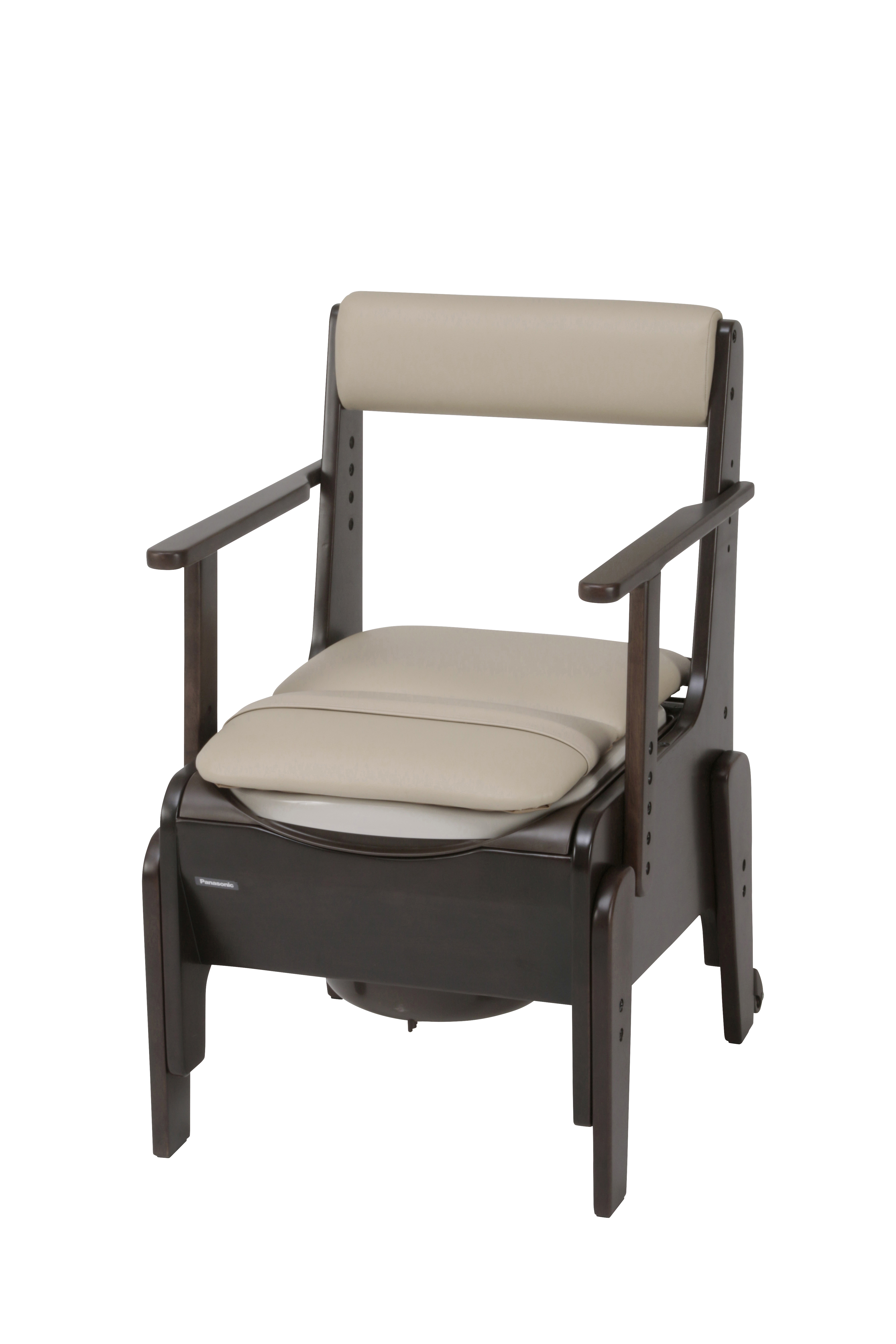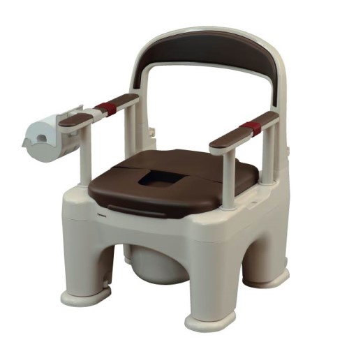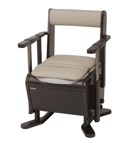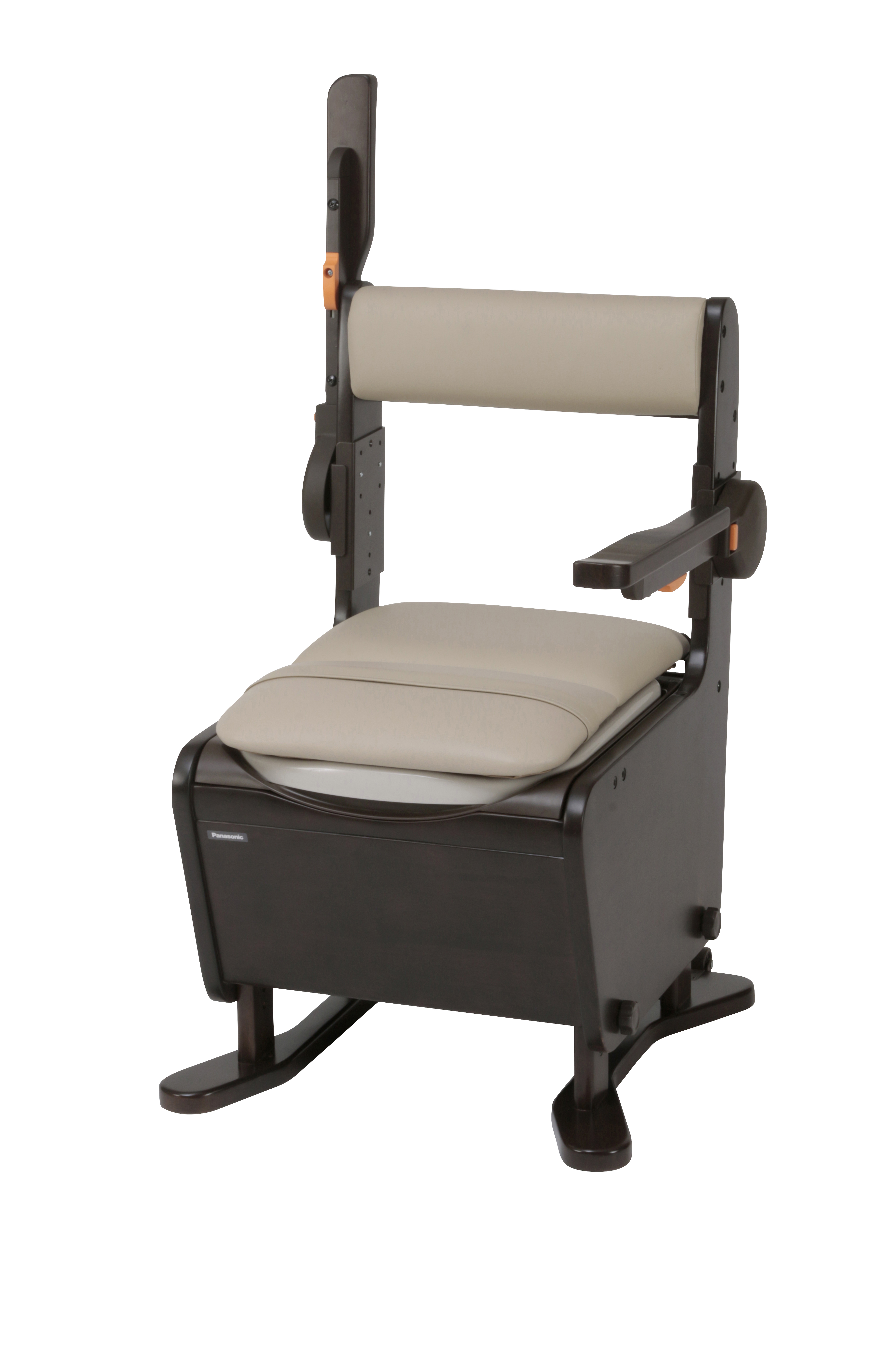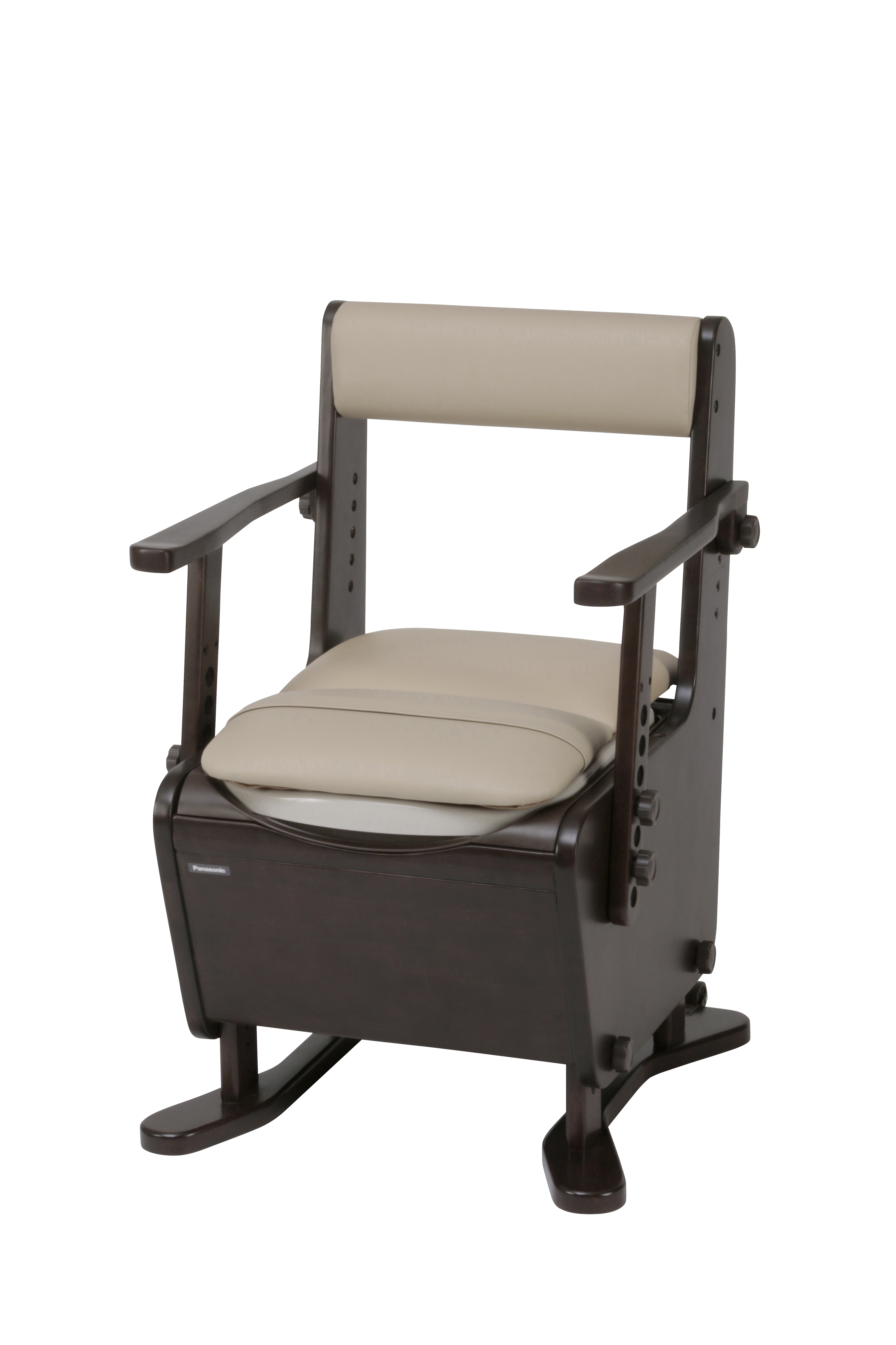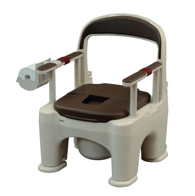 肘掛けと便座面が水平だから移乗がスムーズ。新しい使い心地のポータブルトイレです。