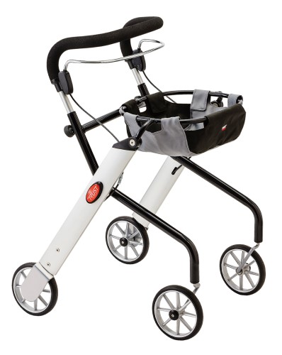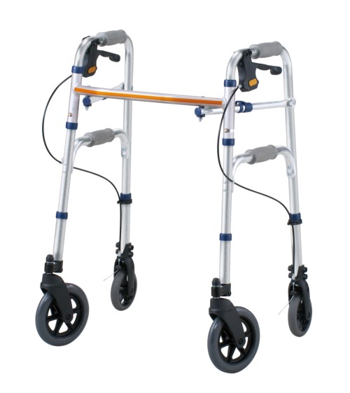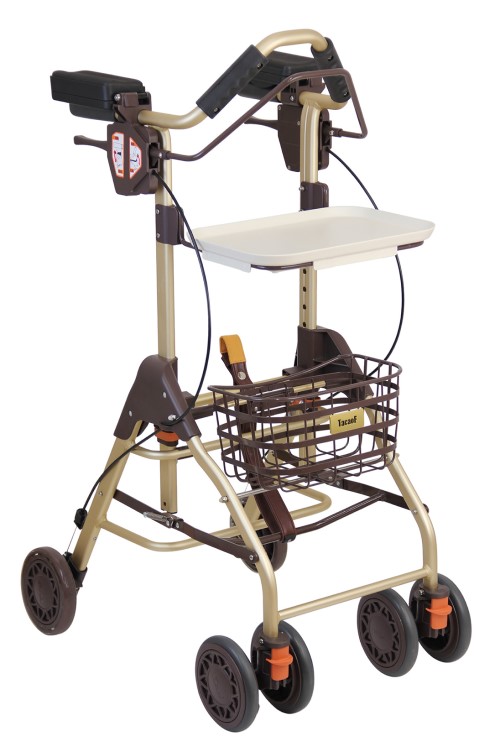 転倒につながる急加速時に自動で作動して速度が上がりすぎるのを防いでくれる歩行器です。