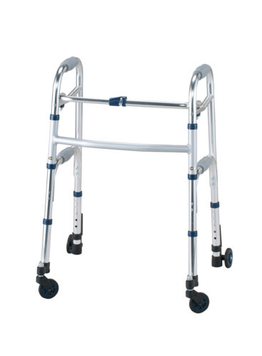 狭い廊下でも回転することができる、コンパクト折りたたみ歩行器です。