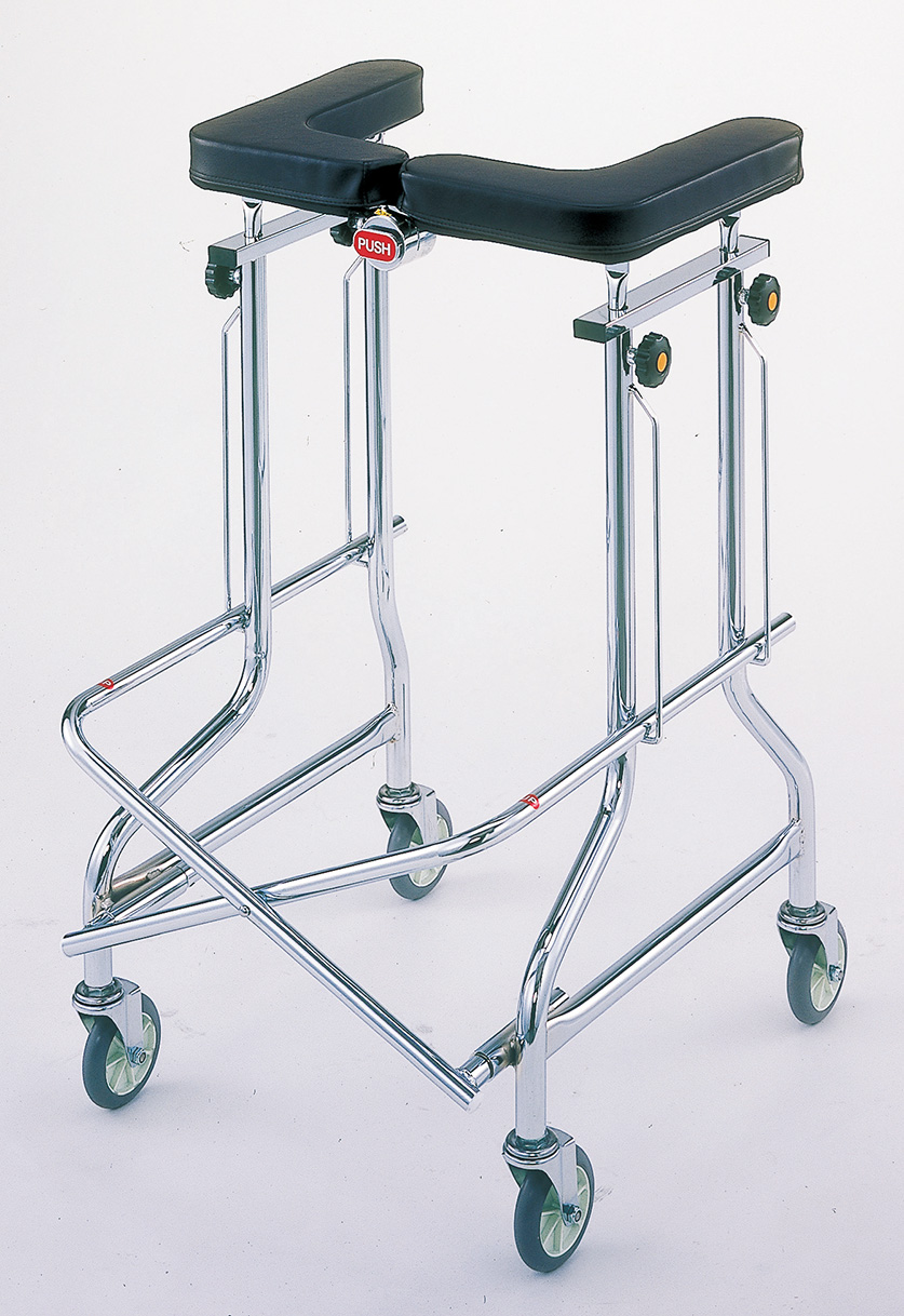 コンパクトに折りたためる、男性も使いやすいデザインの歩行器です