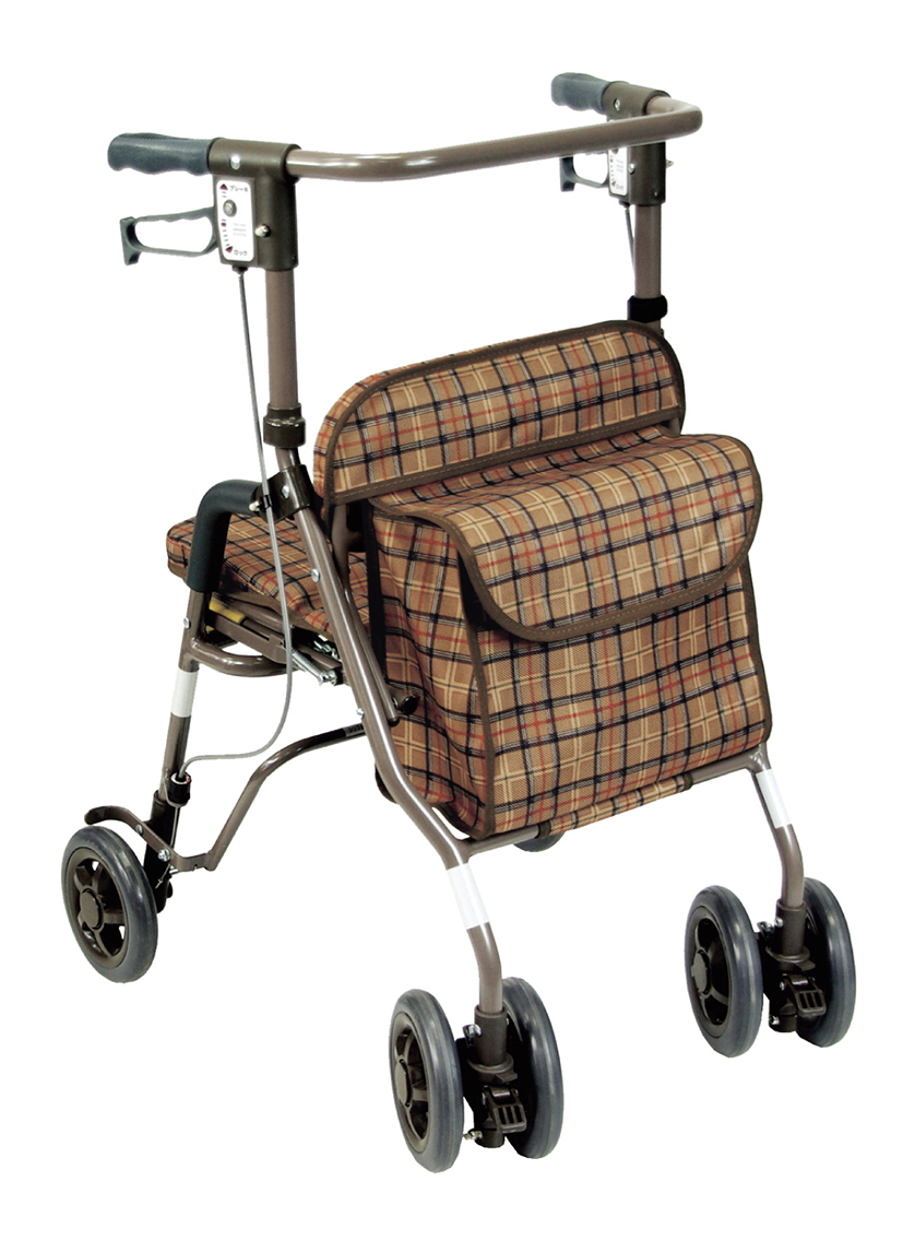 抑制機能ブレーキ付きで、坂道でも安心してご利用いただける歩行器です。