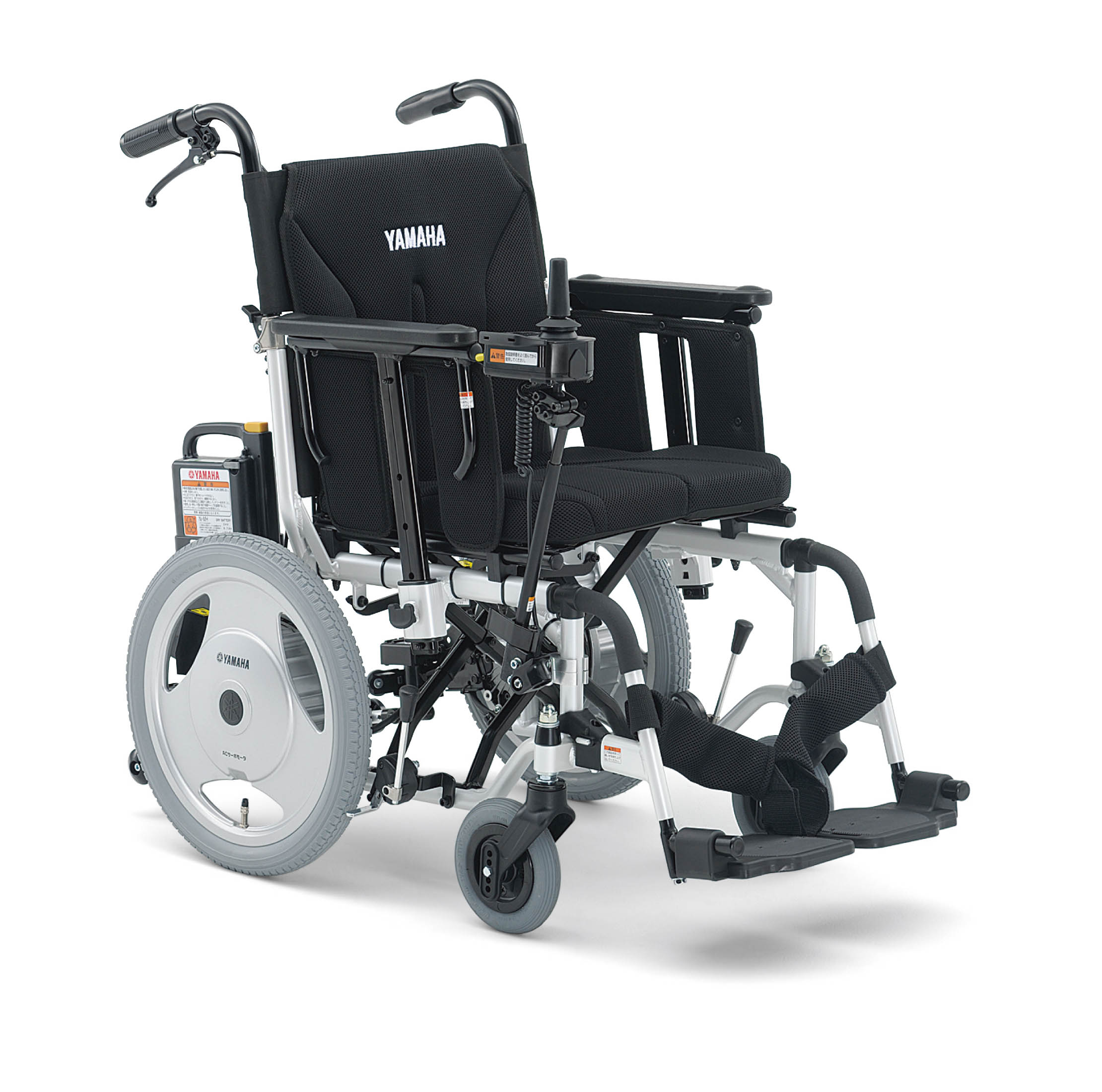 スタイリッシュなデザインと高いフレーム強度を持つ電動車いすです。介助者による電動操作が可能なタイプもあります。