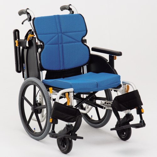 お体に合わせてサイズ調整ができる車いすです。そのまま座るだけで理想的な姿勢になる背シートを採用、快適な座り心地の車いすです。