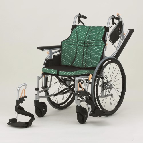 リクライニング車いすの欠点であった「身体の前ずれ」を起こさない機構を採用しています。