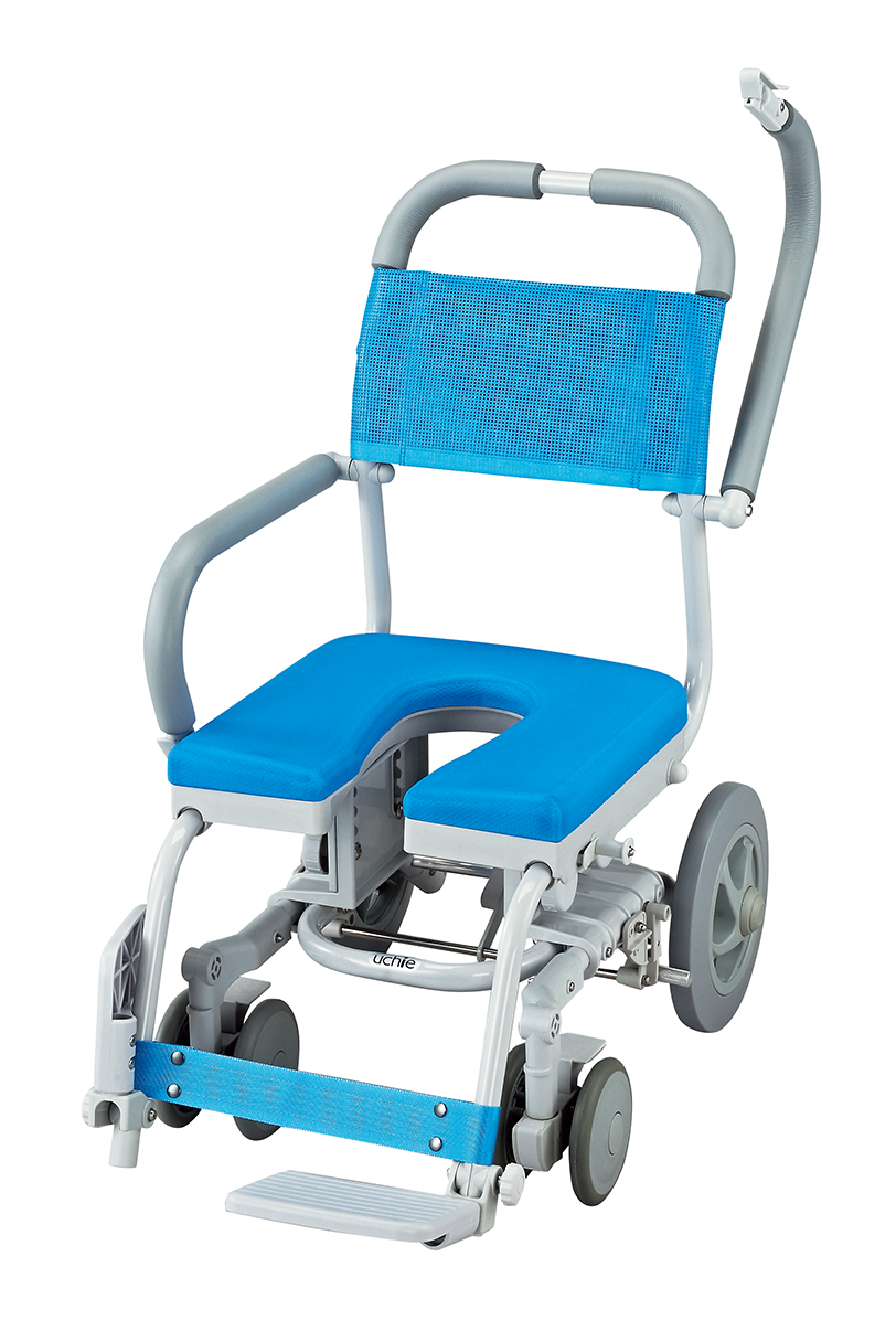 居室から脱衣所・浴室内の移動もこれ一台で、水周りで使えるお風呂用の車いすです