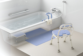 浴槽が深くてまたぎが大変な際に使用します。そのまま浴槽内で腰掛けることで立ち座りも楽になります