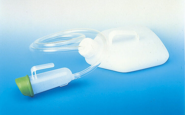 こぼれ防止機能付の尿瓶です。
