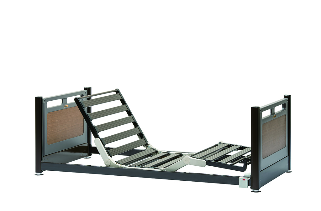 背上げ時の身体のズレを抑える機能が満載。身長やお部屋のスペースに合わせてサイズをお選びいただけるベッドです。