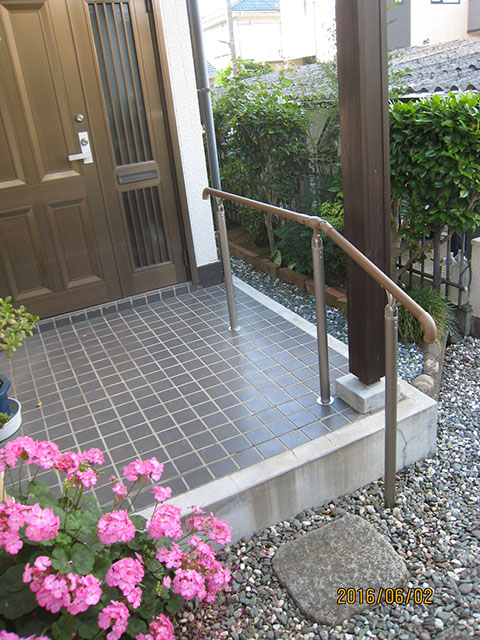 玄関を出たところに外階段がある場合、つかまるところがないと転倒の心配が出てきます。手すりを取り付けることで外階段の昇り降りが安全にできるようになり、外出が楽しくなります。